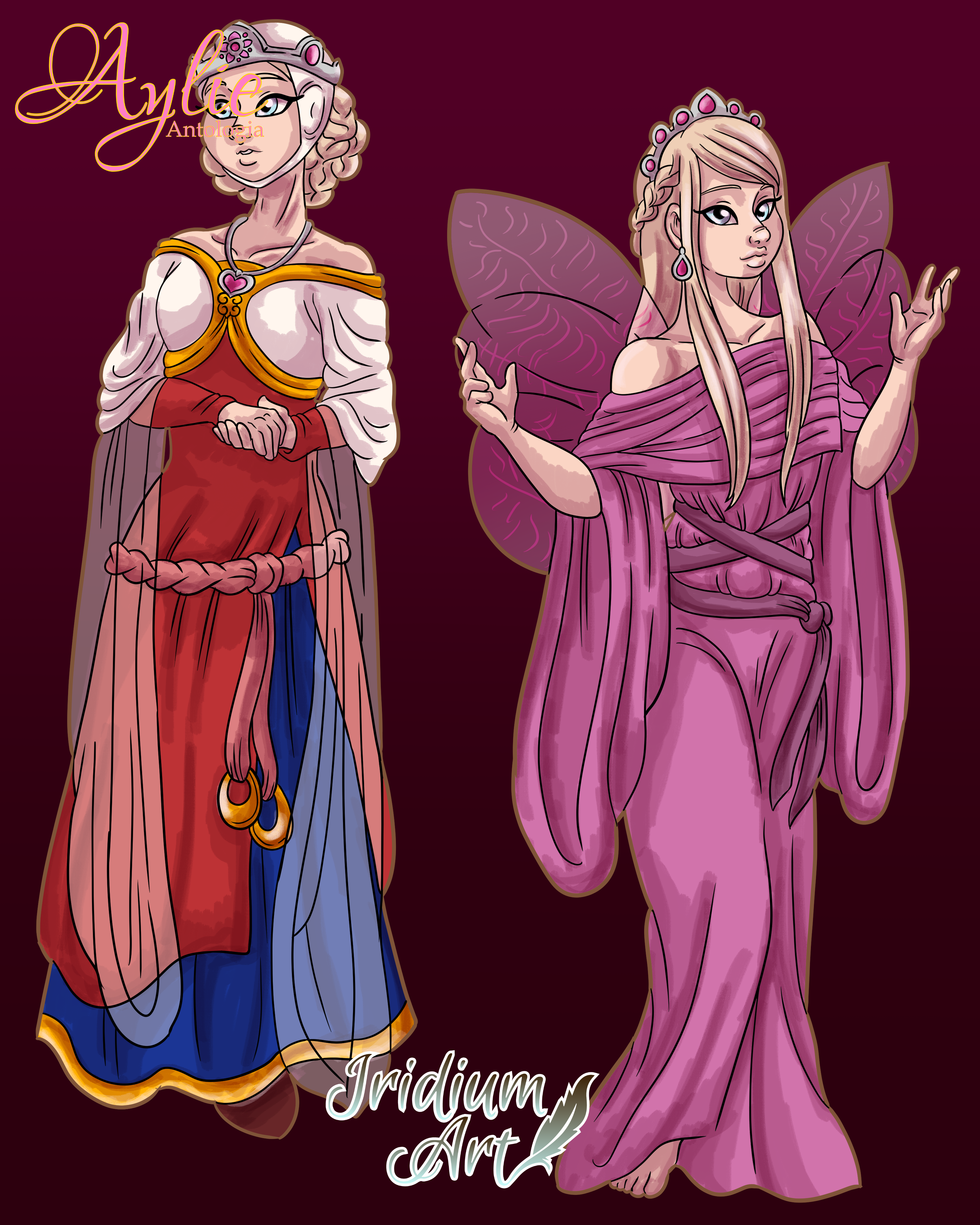 To the left I give you a concept which picks up right from we were left off at the ending of A Court: Aylie is now officially recognized as a princess and heir to her House Among the Fae, and, since she was keen on keeping a good relationship with Humans, she donned herself in courtly fashion. After all, she is now a political player and has to present herself like one.