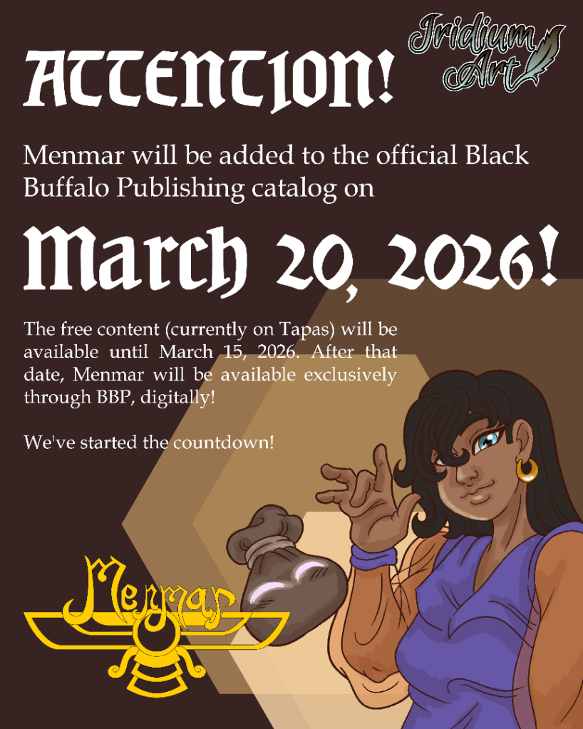 Happy 2026! As I announced on my Instagram last year, Menmar will be leaving Tapas after 5 years and it will leave Amazon after a 4 year run. The reason behind it is the fact that Menmar will officially join Black Buffalo Publishing‘s catalogue on March 20th, 2026!